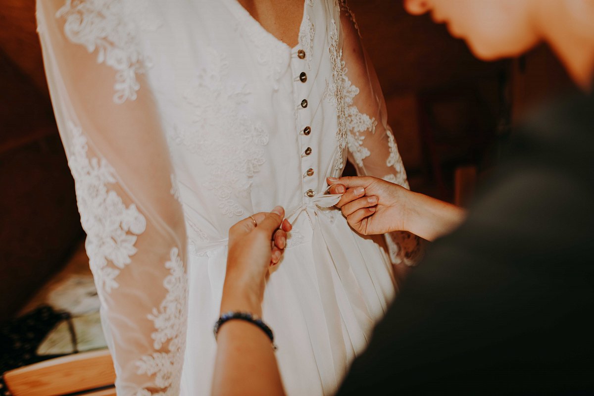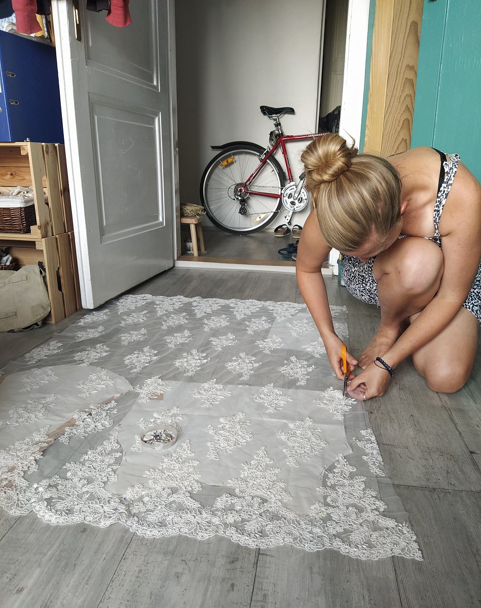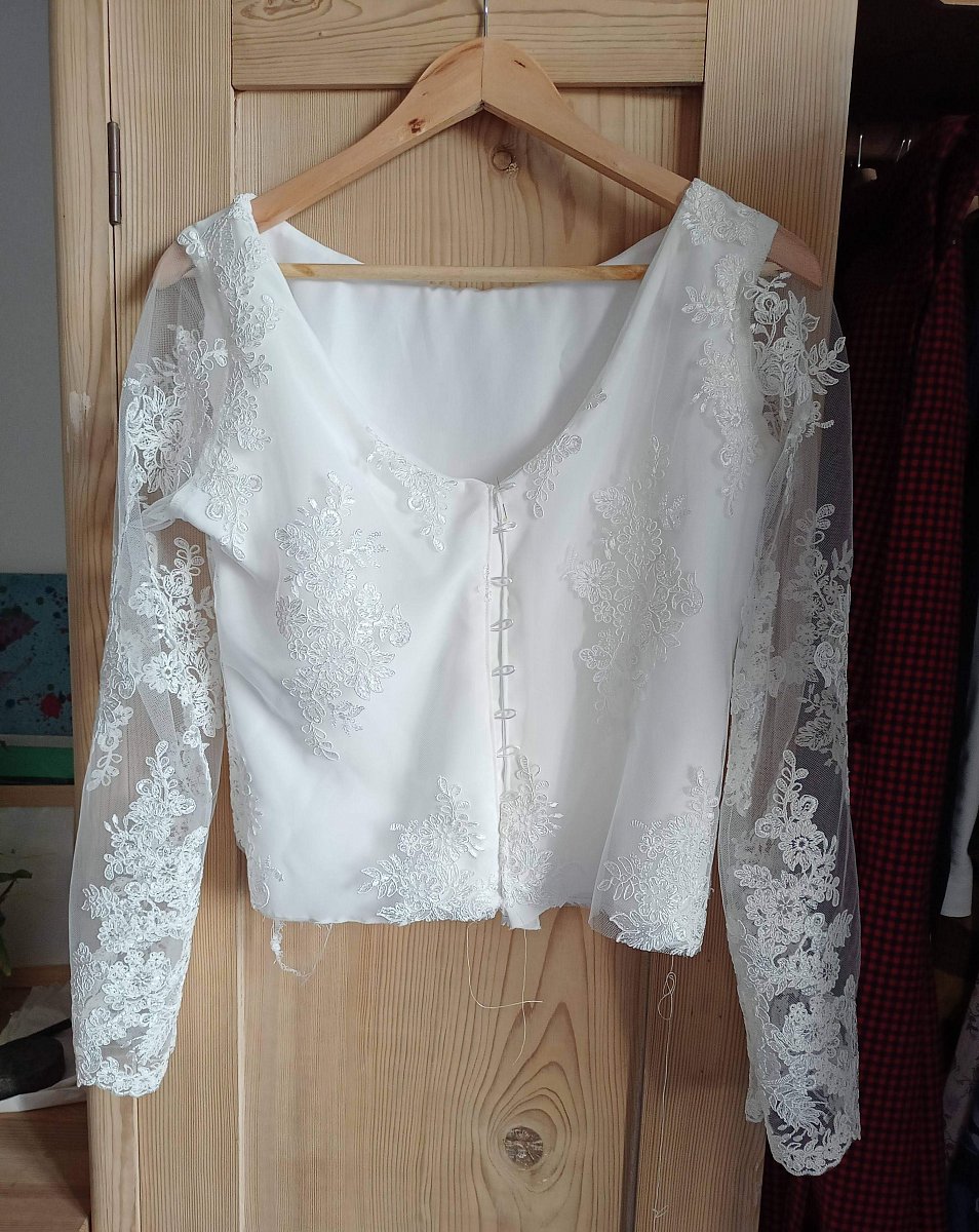 Nejdříve proběhl průzkum trhu s látkami. Člověk se za život vdává jednou, dvakrát, tak ať šaty vypadají hezky. Najít krajku podle představ a látky hedvábné... byl oříšek. Naštěstí Magdy kolegyně, vystudovaná kloboučnice měla doporučení k nezaplacení na @sartorbohemia, kde nám usměvavý personál pomohl s výběrem látek a jako bonus nám paní odbornice přihodila mnoho praktických rad. A to jsme ani nevěděly, že se v obchůdku potkáme, kvůli špatně střiženým rukávům, ještě jednou aneb chyba za pětikilo. Ale jak se správně říká: Chybama se člověk učí. I pro nás tahle chybička byla ponaučením.